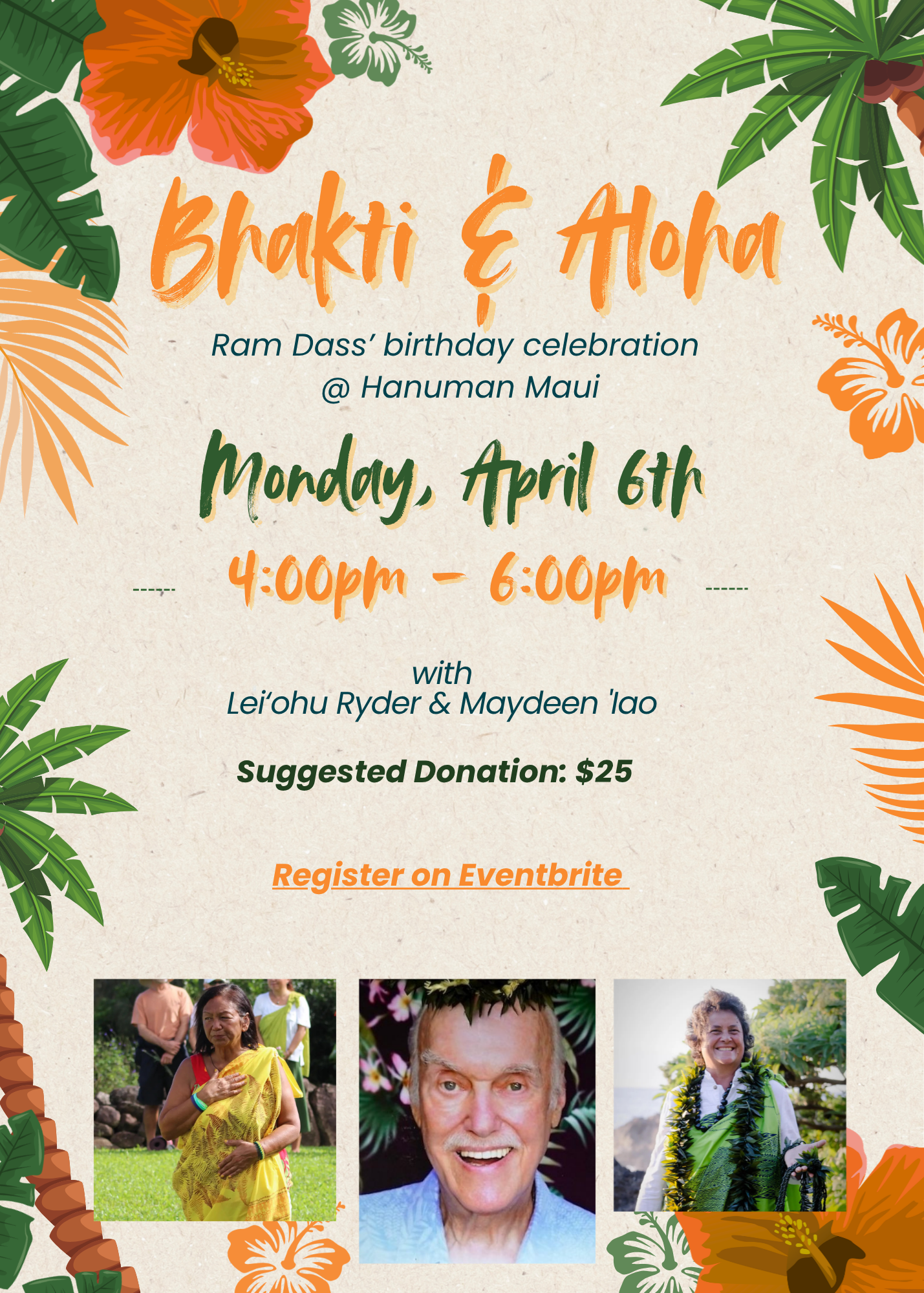 Hanuman Maui is the living continuation of Ram Dass’s presence on Maui. We seek to uphold his teachings of love, service and devotion.