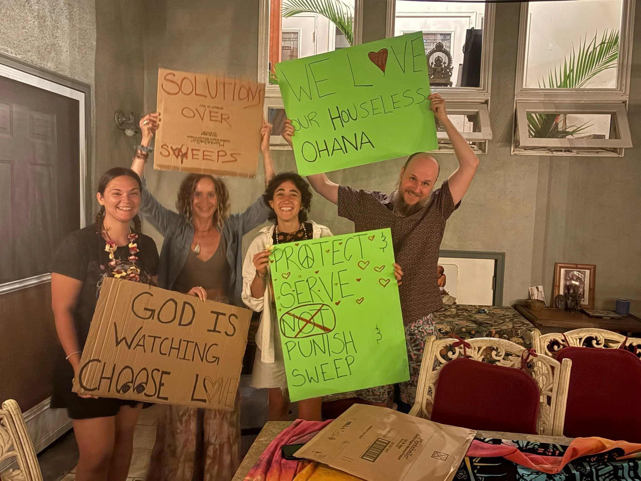 We walk alongside our neighbors: sharing meals, offering rides, showing up in emergencies, and finding ways to ease suffering together. With community partners, we’re also hosting Ohana dinners and building legal support so folks can stand up against unfair citations.